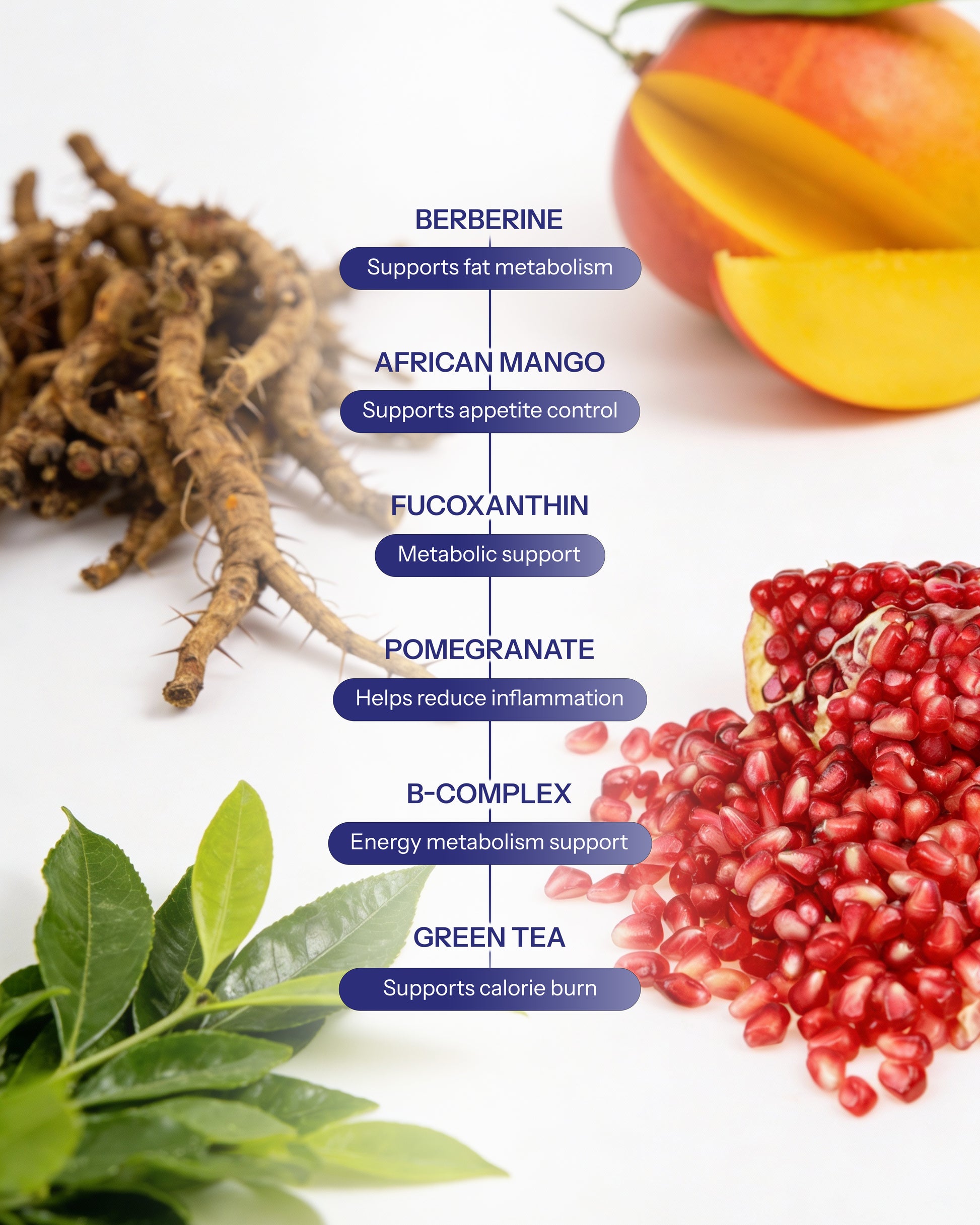 Berberine Extract 5mg • Fucoxanthin Extract 3mg • Green Tea Extract 2mg